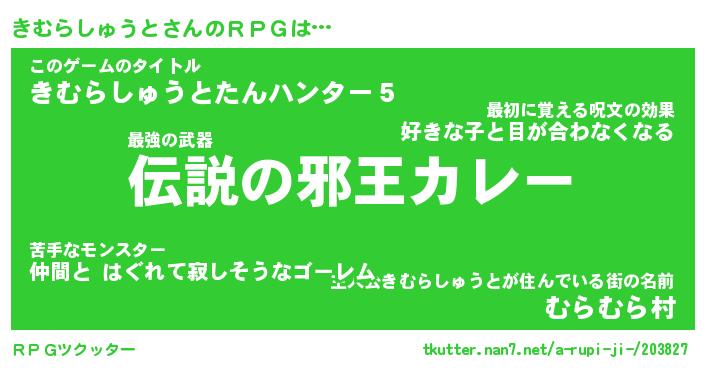 | 男性向けラノベタイトル風あだ名 | 『きむらしゅうとの憂鬱』 |