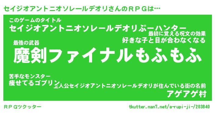 | 伝説のあだ名 | 『伝説の竜騎士セイジオアントニオソレールデオリ』 |