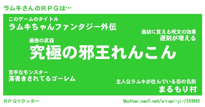 | ファンタジー風あだ名 | 『ラムフェル』『エターナルラムキー』 |