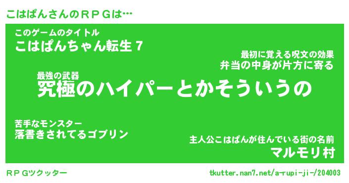 | 男性向けラノベタイトル風あだ名 | 『コハパンアートオンライン』 |
