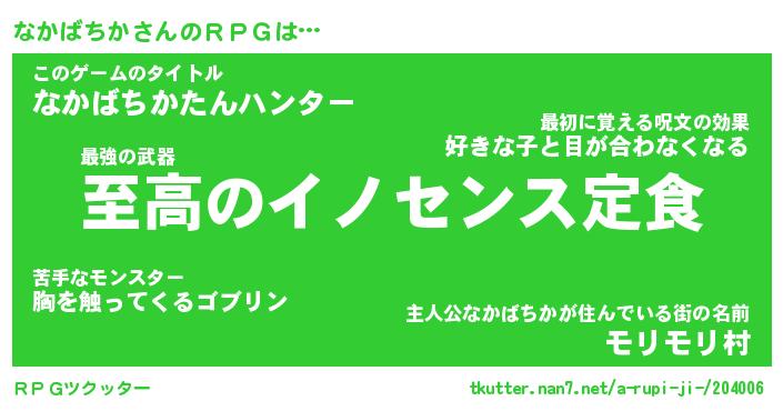 | ファンタジー風あだ名 | 『ナカフェル』『エターナルナカバチカー』 |
