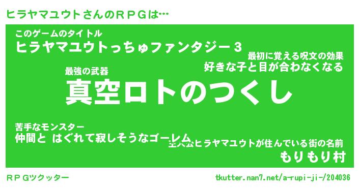 | 男性向けラノベタイトル風あだ名 | 『ヒラヤマユウトアートオンライン』 |