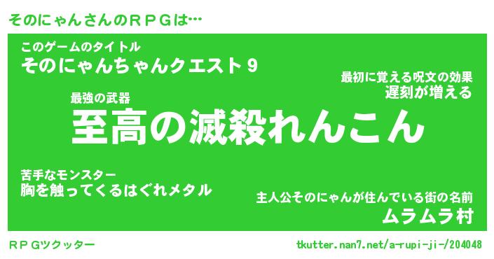 | 男性向けラノベタイトル風あだ名 | 『ソノニャンアートオンライン』 |