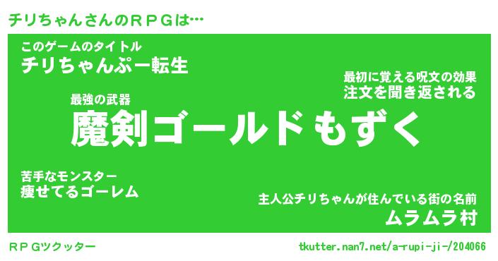 | 男性向けラノベタイトル風あだ名 | 『チリちゃんの憂鬱』 |