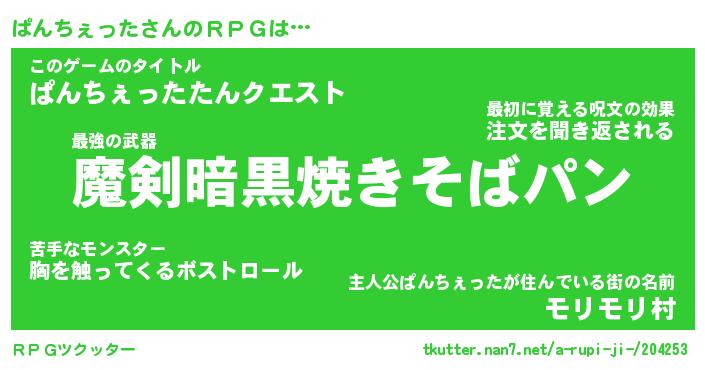 | ヘコむあだ名 | 『ぱんにゅー』『つくし』『ぱんお』 |