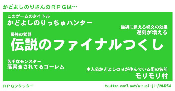 | 男性向けラノベタイトル風あだ名 | 『かどよしのりの憂鬱』 |