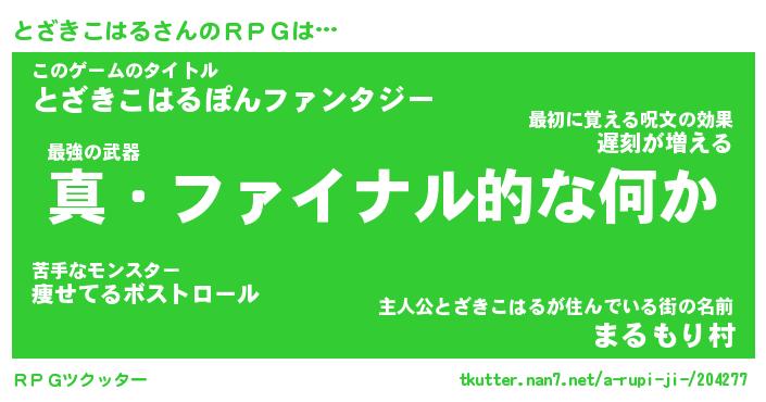 | 男性向けラノベタイトル風あだ名 | 『トザキコハルアートオンライン』 |