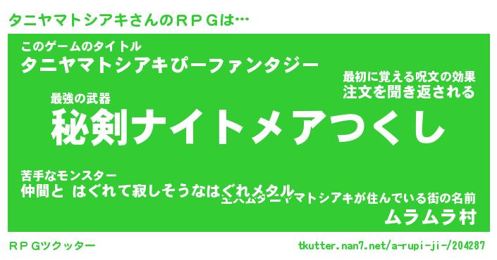 | 胡散臭い通販商品みたいなあだ名 | 『必ず成功する霊験あらたかなお札…その名も「タニヤマトシアキ」』 |