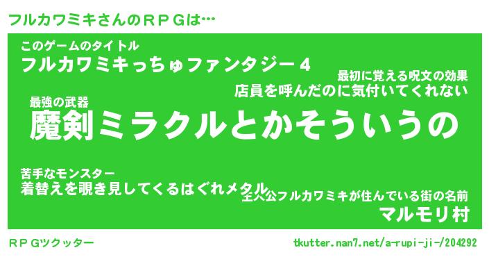| ヒーロー風カッコイイあだ名 | 『スーパーフルカワミキ』『幻影騎士フル』 |