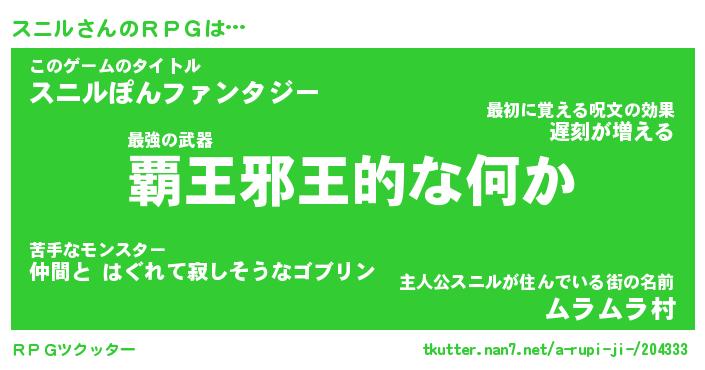 | ファンタジー風あだ名 | 『スニフェル』『エターナルスニルー』 |