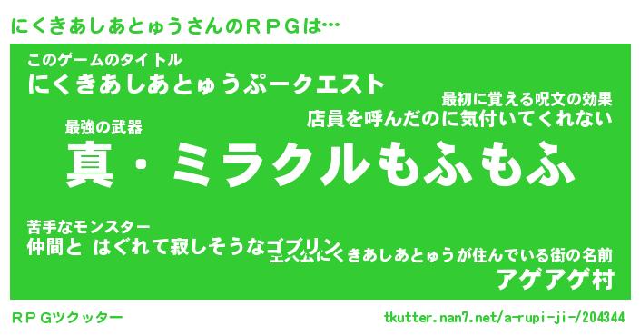 | 男性向けラノベタイトル風あだ名 | 『ニクキアシアトュウアートオンライン』 |
