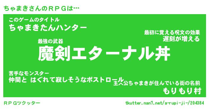 | 男性向けラノベタイトル風あだ名 | 『ちゃまきの憂鬱』 |