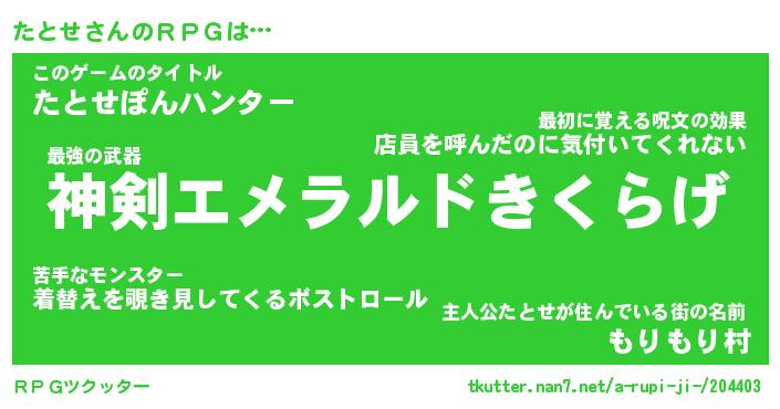 | ファンタジー風あだ名 | 『タトフェル』『エターナルタトセー』 |