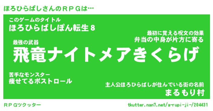 | 胡散臭い通販商品みたいなあだ名 | 『億万長者になれる霊験あらたかなお札…その名も「ほろひらばし」』 |