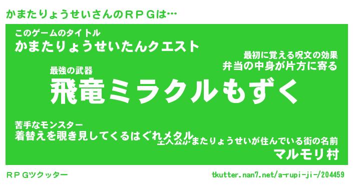 | 男性向けラノベタイトル風あだ名 | 『カマタリョウセイアートオンライン』 |