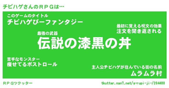 | 男性向けラノベタイトル風あだ名 | 『チビハゲの憂鬱』 |