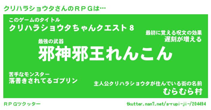 | 男性向けラノベタイトル風あだ名 | 『クリハラショウタアートオンライン』 |
