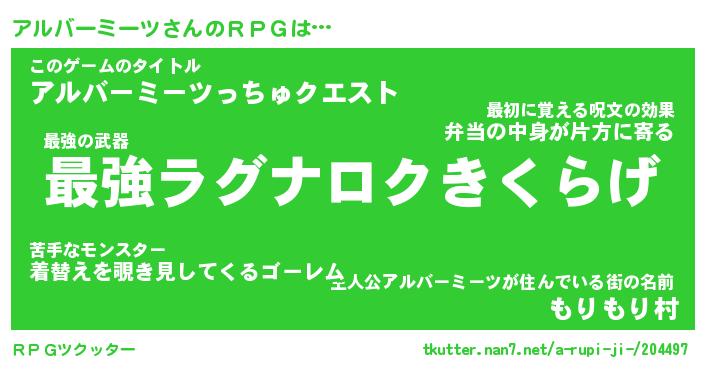 | 男性向けラノベタイトル風あだ名 | 『アルバーミーツアートオンライン』 |
