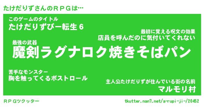 | 男性向けラノベタイトル風あだ名 | 『たけだりずの憂鬱』 |