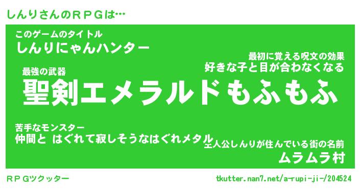 | ファンタジー風あだ名 | 『シンフェル』『エターナルシンリー』 |