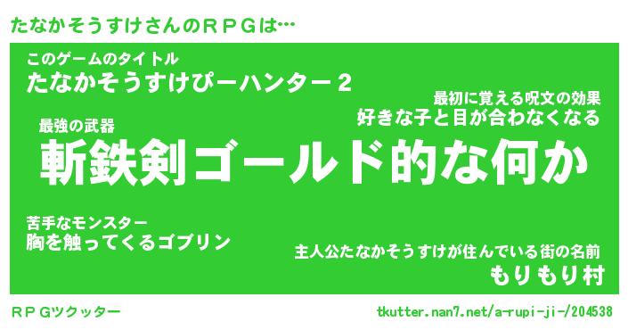 | 男性向けラノベタイトル風あだ名 | 『たなかそうすけの憂鬱』 |