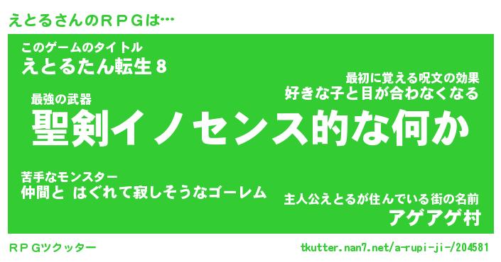 | 胡散臭い通販商品みたいなあだ名 | 『必ず成功する霊験あらたかなお札…その名も「えとる」』 |