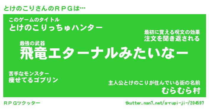 | ヒーロー風カッコイイあだ名 | 『スーパートケノコリ』『幻影騎士トケ』 |
