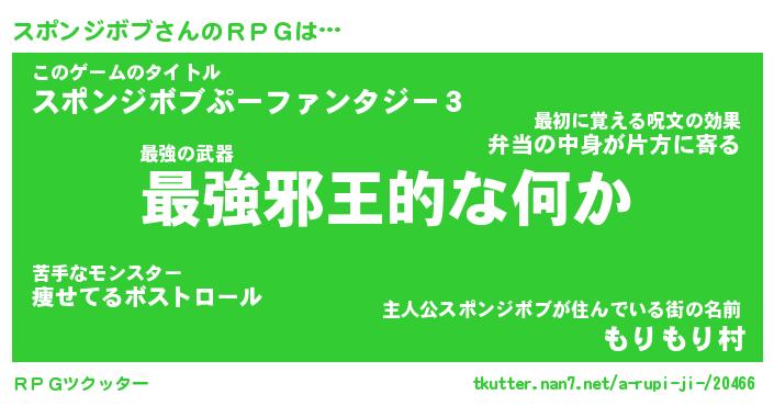 | 料理風あだ名 | 『節約★スポンジボブと油揚げの玉子丼』 |