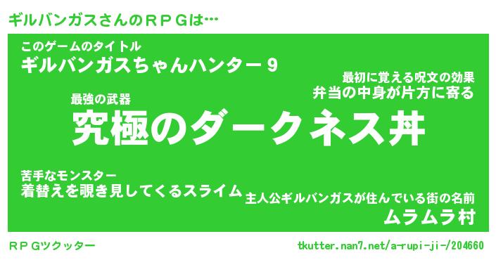 | 男性向けラノベタイトル風あだ名 | 『ギルバンガスの憂鬱』 |