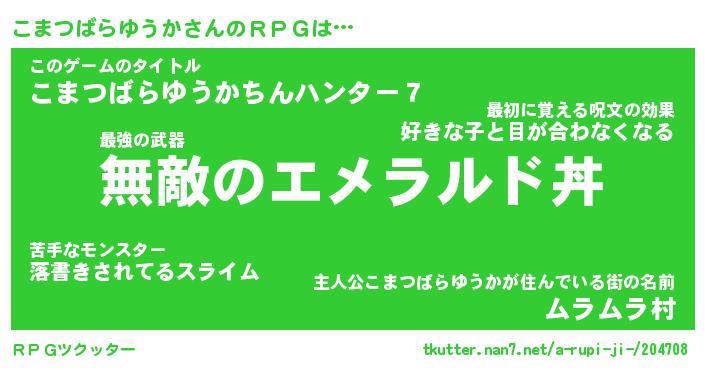 | 伝説のあだ名 | 『封印されしスナイパーこまつばらゆうか』 |