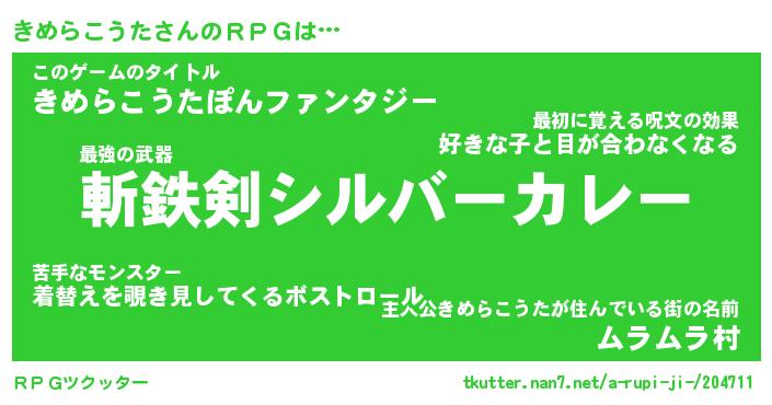 | 男性向けラノベタイトル風あだ名 | 『きめらこうたの憂鬱』 |