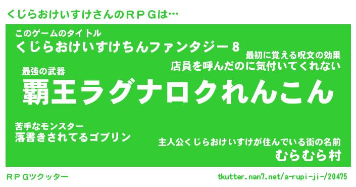 伝説のあだ名 | 『封印されし竜騎士くじらおけいすけ』 |