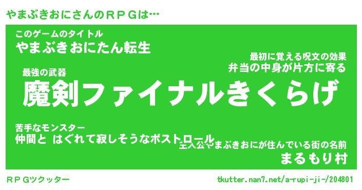 | 伝説のあだ名 | 『伝説の竜騎士やまぶきおに』 |