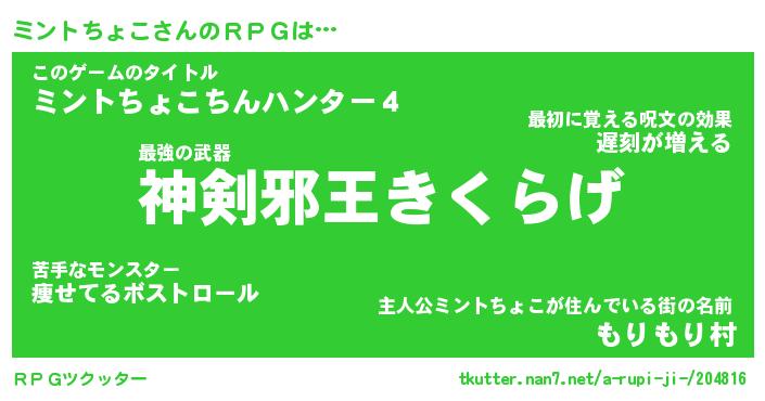 | 男性向けラノベタイトル風あだ名 | 『ミントちょこの憂鬱』 |