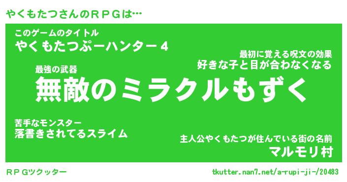 | ファンタジー風あだ名 | 『ヤクフェル』『エターナルヤクモタツー』 |