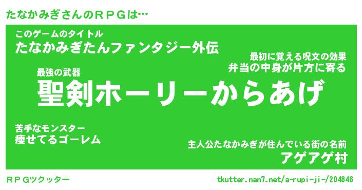 | ファンタジー風あだ名 | 『タナフェル』『エターナルタナカミギー』 |