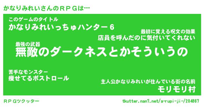 | 男性向けラノベタイトル風あだ名 | 『カナリミレイアートオンライン』 |