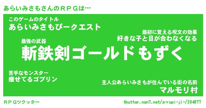 | 胡散臭い通販商品みたいなあだ名 | 『必ず成功する霊験あらたかなお札…その名も「あらいみさも」』 |