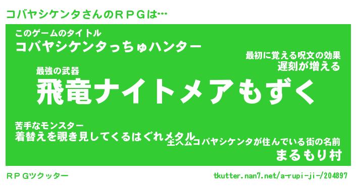 | 男性向けラノベタイトル風あだ名 | 『コバヤシケンタアートオンライン』 |