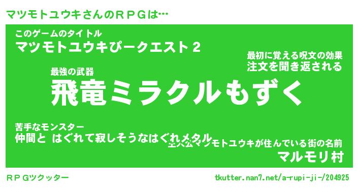 | 胡散臭い通販商品みたいなあだ名 | 『億万長者になれるブレスレット…その名も「マツモトユウキ」』 |