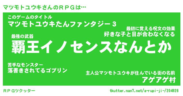 | 胡散臭い通販商品みたいなあだ名 | 『億万長者になれる霊験あらたかなお札…その名も「マツモトユウキ」』 |
