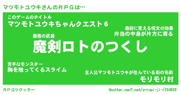 | 伝説のあだ名 | 『伝説の竜騎士マツモトユウキ』 |