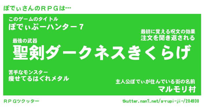 | 男性向けラノベタイトル風あだ名 | 『ぽでぃの憂鬱』 |