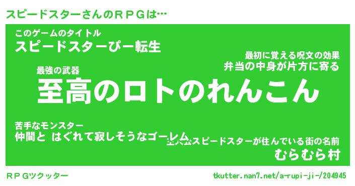 | 男性向けラノベタイトル風あだ名 | 『スピードスターアートオンライン』 |