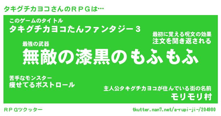 | 料理風あだ名 | 『節約★タキグチカヨコと油揚げの玉子丼』 |