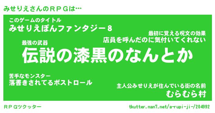 | 胡散臭い通販商品みたいなあだ名 | 『モテモテ間違いなし霊験あらたかなお札…その名も「みせりえ」』 |