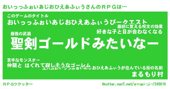 | 胡散臭い通販商品みたいなあだ名 | 『必ず成功する霊験あらたかなお札…その名も「おいっっふぉいあじおひえあふぃう」』 |