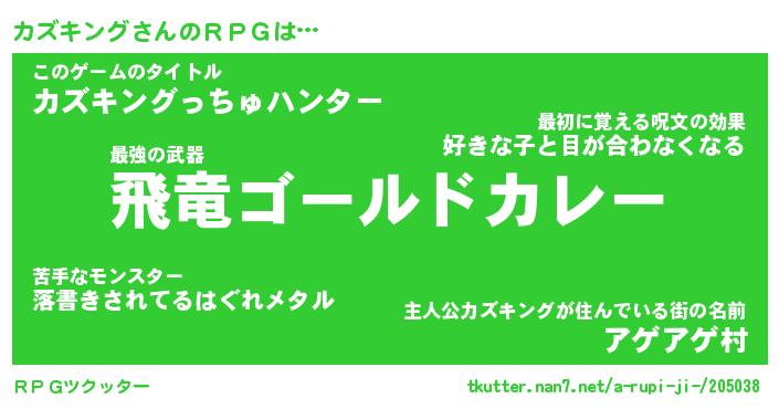 | 男性向けラノベタイトル風あだ名 | 『カズキングアートオンライン』 |