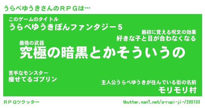 | 男性向けラノベタイトル風あだ名 | 『うらべゆうきの憂鬱』 |