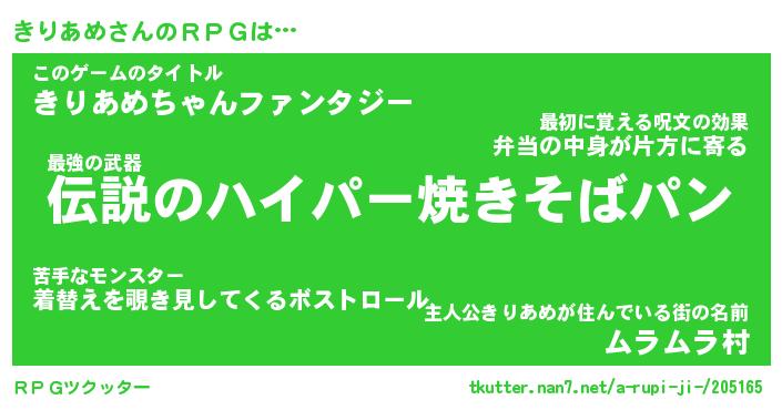 | 料理風あだ名 | 『節約★きりあめと油揚げの玉子丼』 |